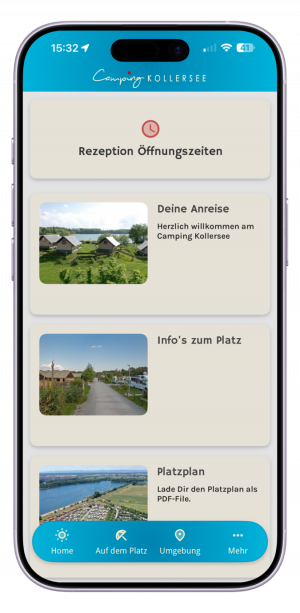 Lade die Camping Kollersee Gast App noch heute herunter und genieße einen unbeschwerten Campingurlaub mit allen wichtigen Infos immer griffbereit!