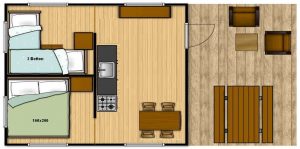 Deze tentlodge biedt je het echte kampeergevoel met bijna alle gemakken voor maximaal 5 personen. Hierbij hoort, naast de volledig uitgeruste keuken, een gezellige lounge zithoek op het overdekte terras. In deze tentlodge is er geen douche of toilet. Onze moderne sanitairgebouwen staan 24 uur per dag tot uw beschikking.