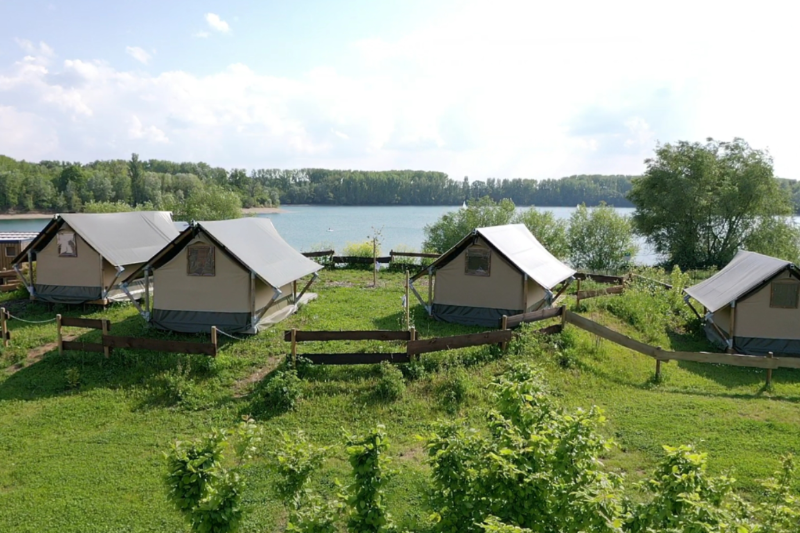 De mini-tentlodges bieden je een uniek uitzicht op de Kollersee, die is exclusief beschikbaar bij onze 5 mini’s.